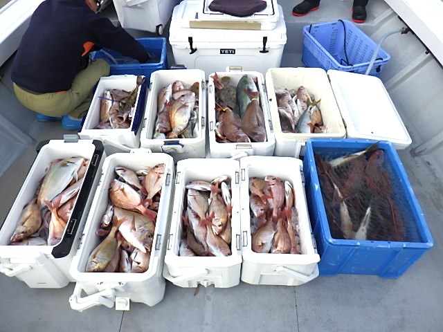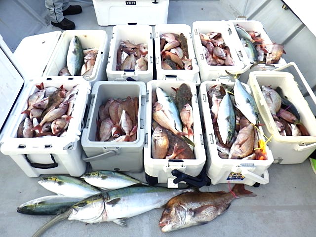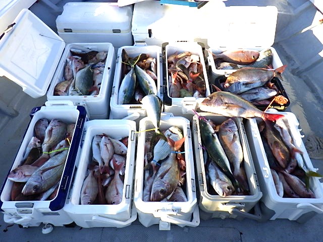 1日食いっぱなし、真鯛も他魚種も沢山釣れました。