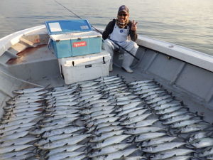 初チャレンジで爆釣! 右漁師さん竿頭56本!流石本職(笑)
