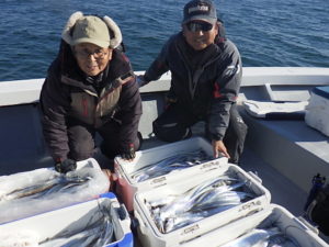 サイズ伸び悩みましたが、皆さん15~30匹、船中100枚over