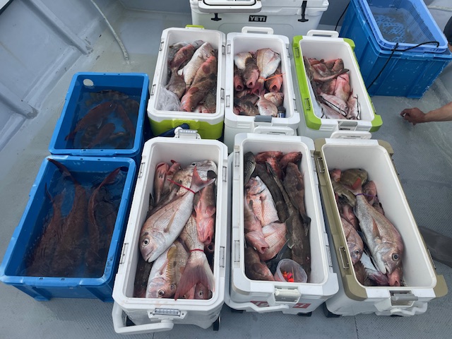 皆さん真鯛15~30匹超え! 船中200匹over