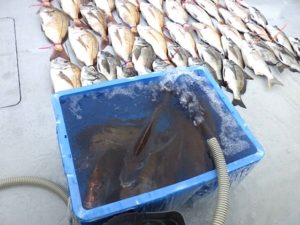 船長も2枚潮がとれた後半から釣りして40本ゲット!